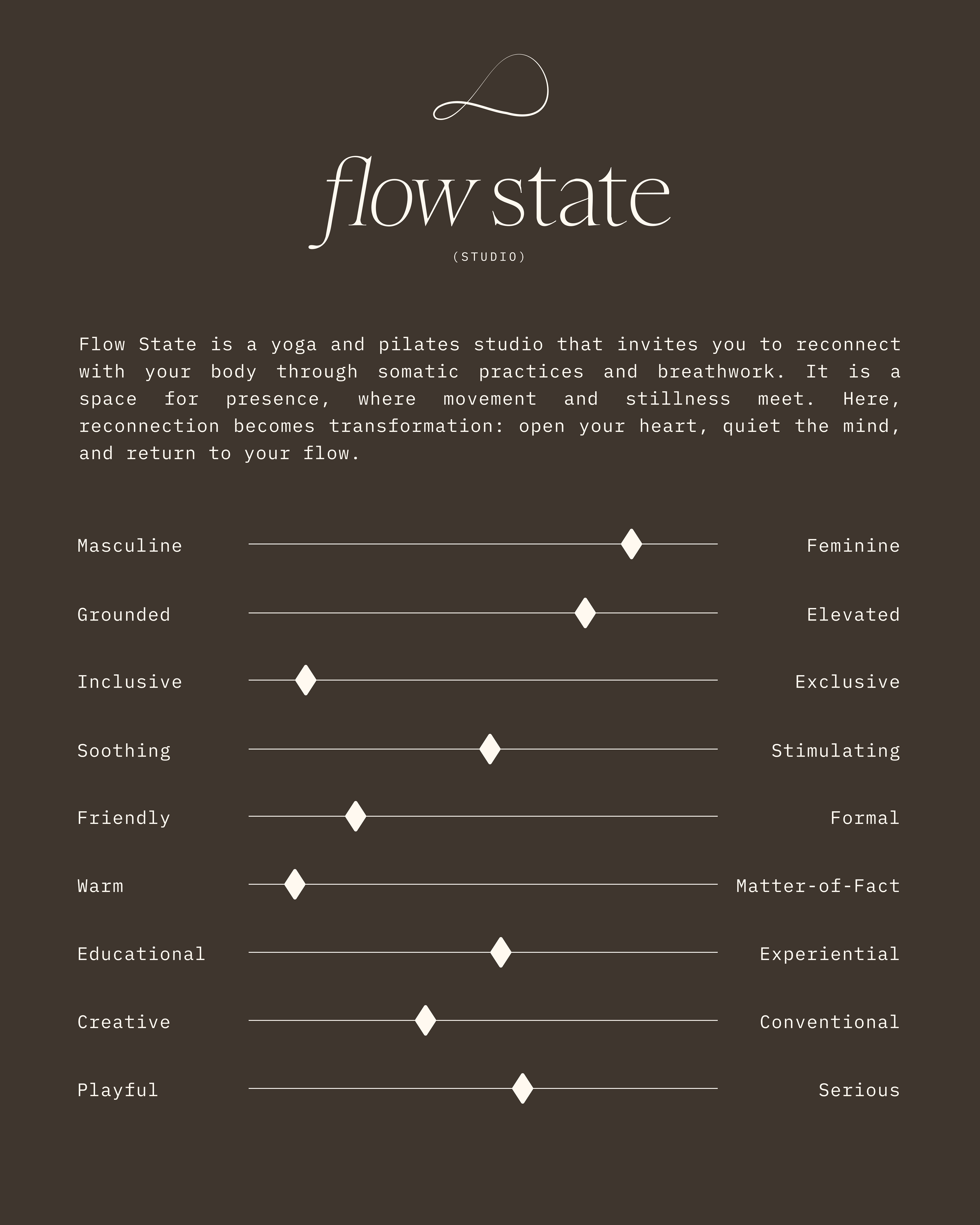 Flow State is a yoga and pilates studio that invites you to reconnect with your body through somatic practices and breathwork. It is a space for presence where movement and stillness meet. Here reconnection becomes transformation: open your heart, quiet your mind, return to your flow state.
